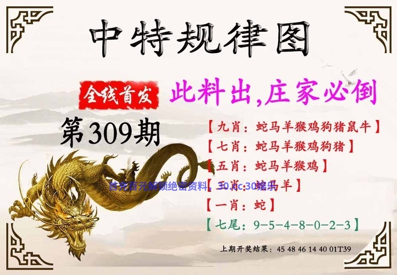 | 309期:阴阳两肖✠阳肖+蛇狗✠开:發00准 |
